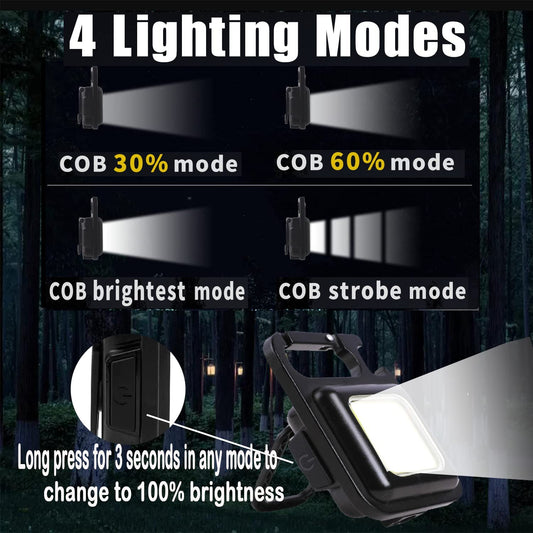 LED小型懐中電灯 1,000ルーメン 明るい 充電式 COB キーホルダー 懐中電灯 ライトモード4種 ポータブル ポケットライト 格納式スタンド/栓抜き/マグネットベース付き ウォーキング/キャンプ用 (2点セット)