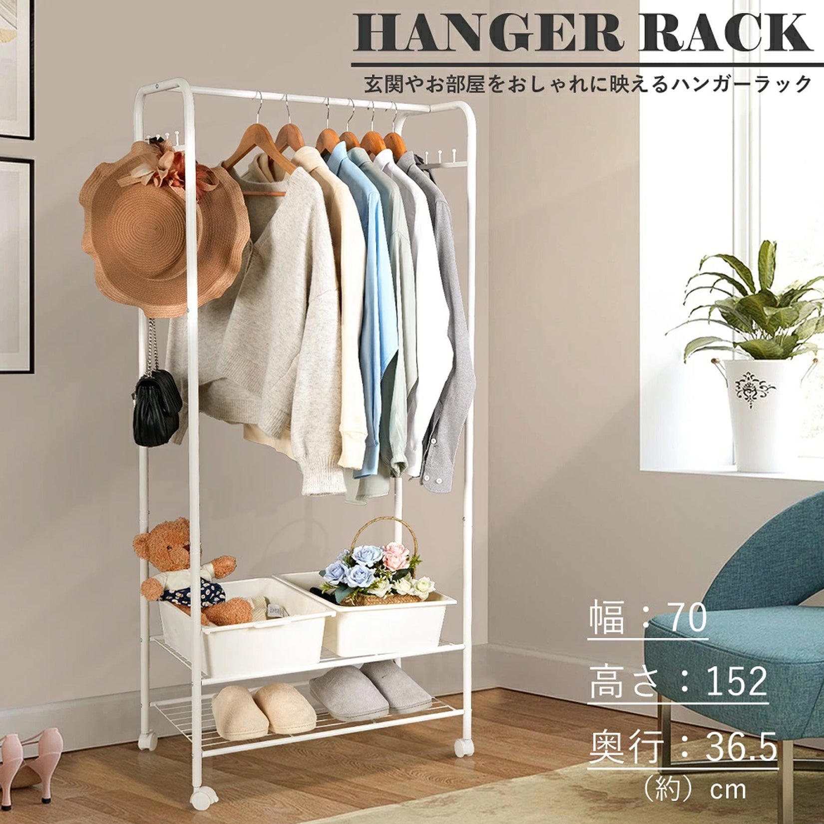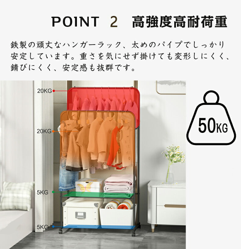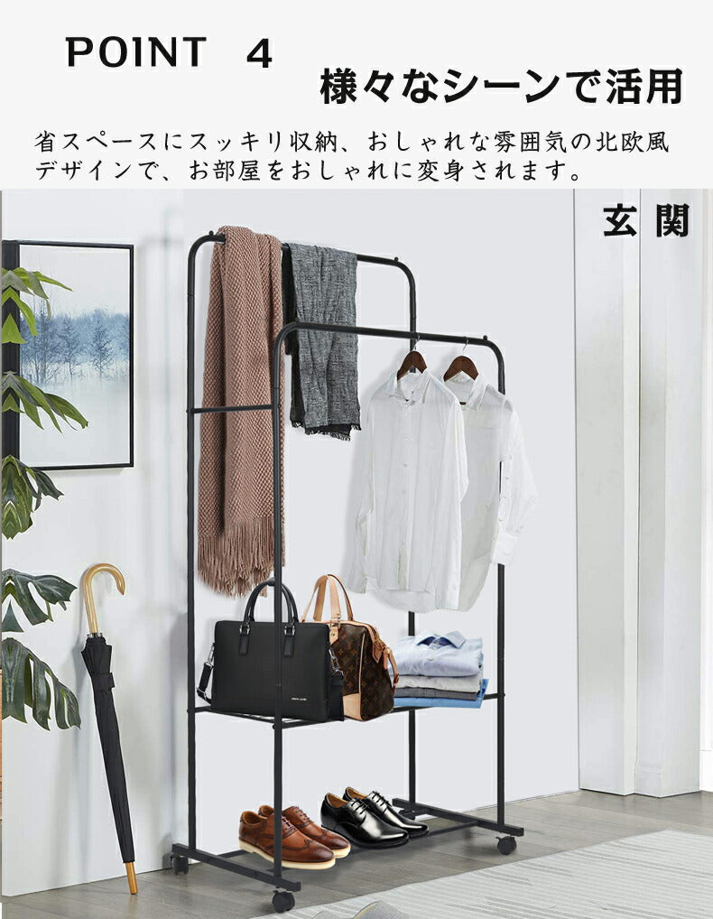 ダブル ハンガーラック 2段 幅80 キャスター付き 2段棚付き パイプハンガーラック 洋服掛け コート掛け 収納ラック 組立簡単 防サビ 防水 耐腐食性 ホワイト ブラック 洋服ラック 丈夫 クローゼット 服収納 部屋干し