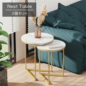 ネストテーブル サイドテーブル 大理石 2個セット テーブルセット 大小 コーヒーテーブル ローテーブル ホワイト 幅45/幅40 小さめ 丸型 ネスティングデザイン おしゃれ 家具 モダン インテリア 省スペース