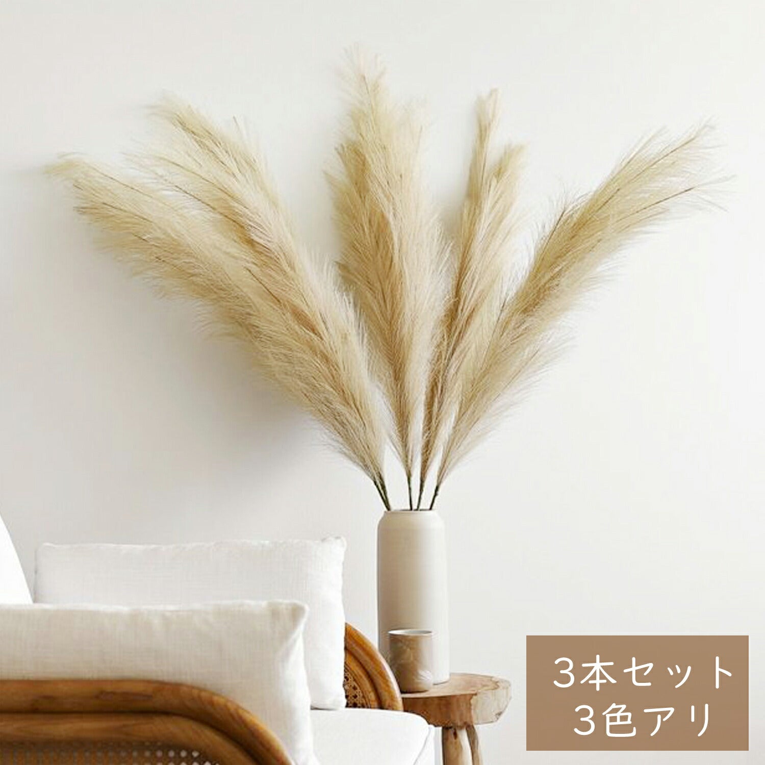 パンパスグラス 3本セット ドライ ドライフラワー インテリア 花瓶 ベージュ