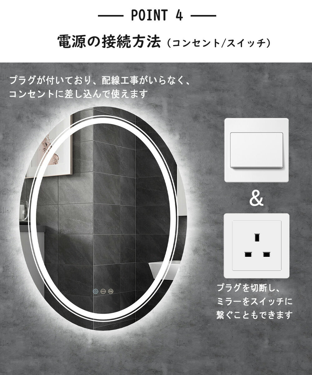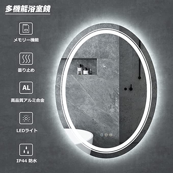 女優ミラー 浴室鏡 led ミラー 壁掛け 洗面鏡 60*80 くもり止め 調光 調色可能 3色照明 横掛け 縦掛け メイクミラー ライト付き 曇り止め led鏡 浴室ミラー 化粧鏡 おしゃれ 洗面所 防水 ドレッサー用 ホテル用 姿見 人気 大型 角型