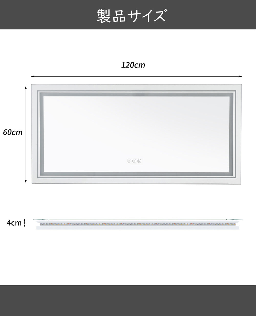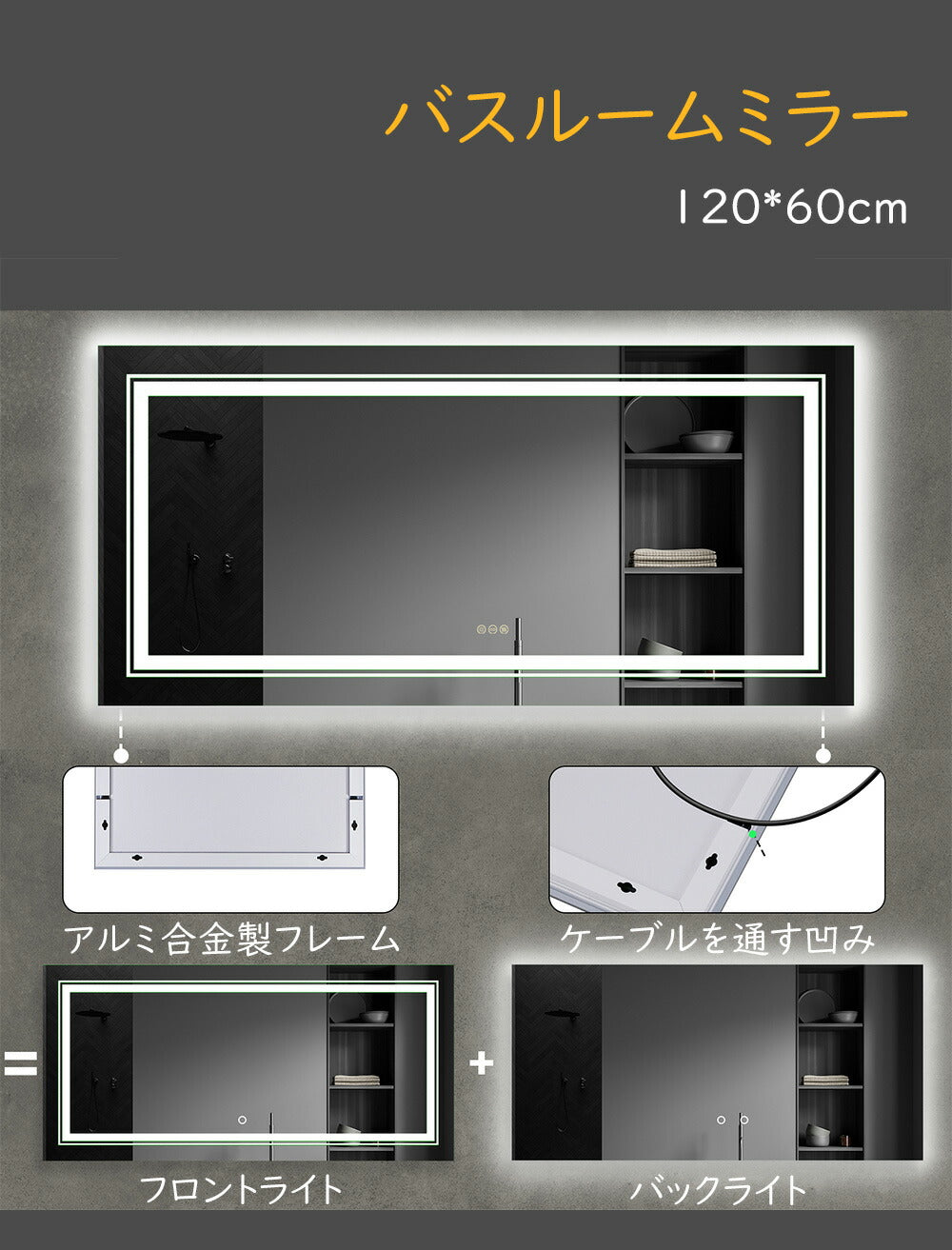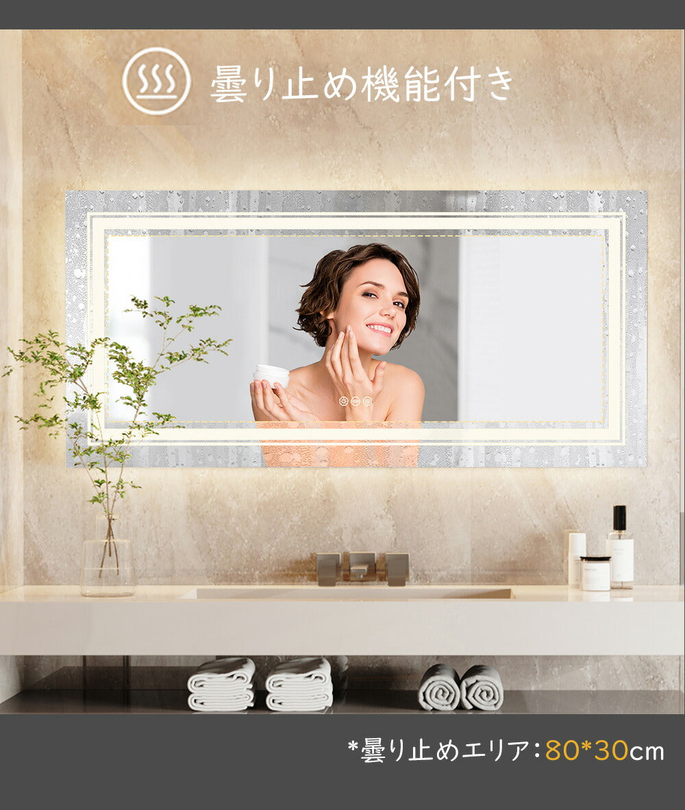 洗面鏡 横長 壁掛けミラー 化粧鏡 全身鏡 姿見 ledライト付き 女優鏡 おしゃれ 浴室用化粧鏡 くもらない 防湿ミラー 1200 600 美容室 防曇鏡