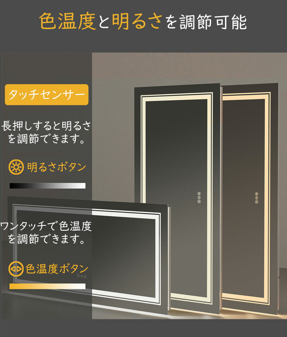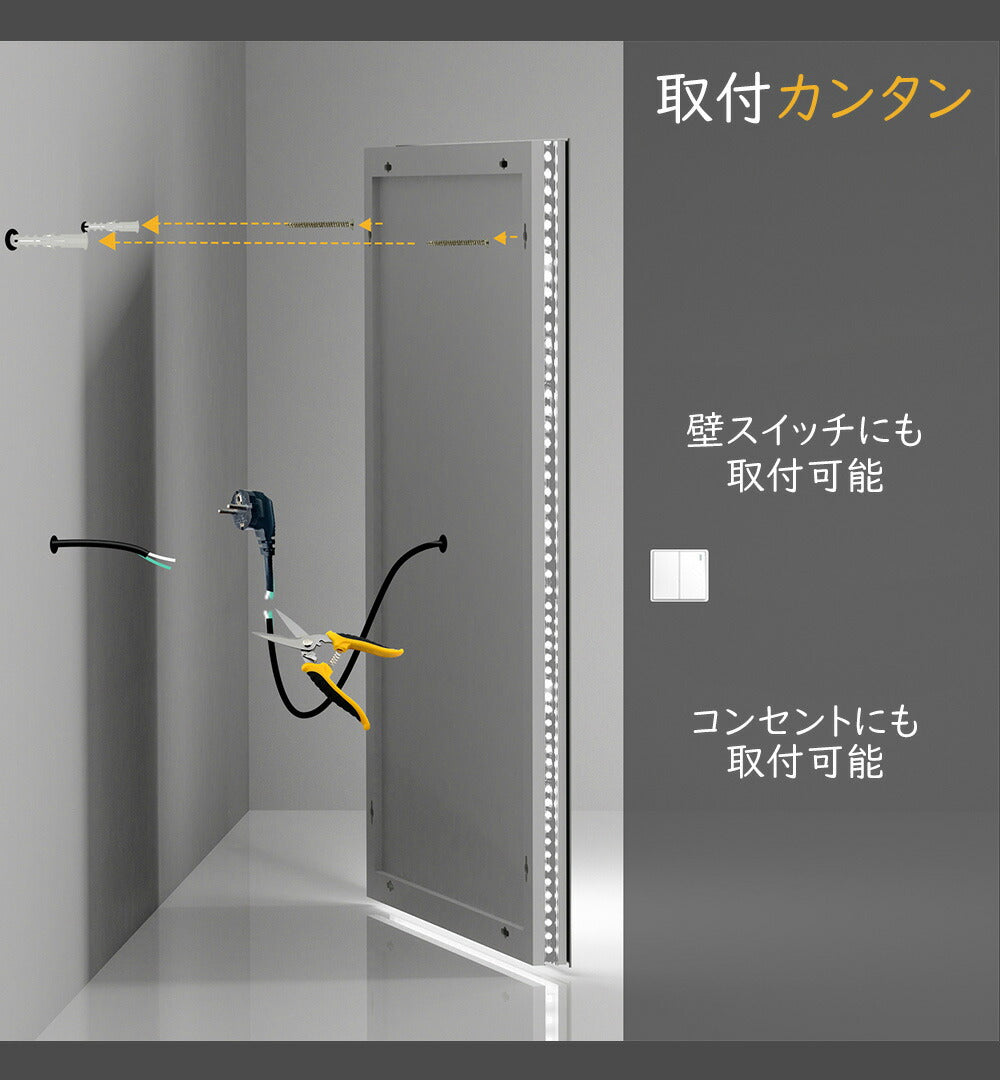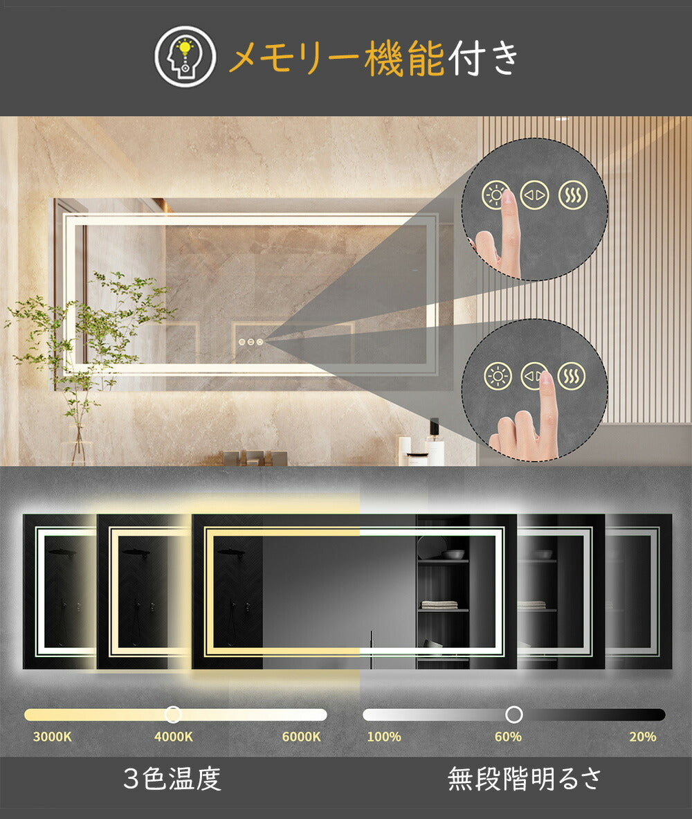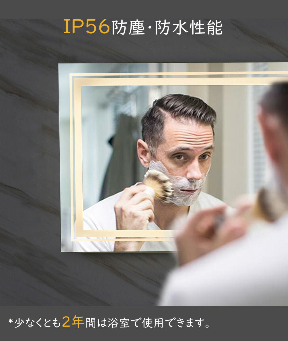 洗面鏡 横長 壁掛けミラー 化粧鏡 全身鏡 姿見 ledライト付き 女優鏡 おしゃれ 浴室用化粧鏡 くもらない 防湿ミラー 1200 600 美容室 防曇鏡