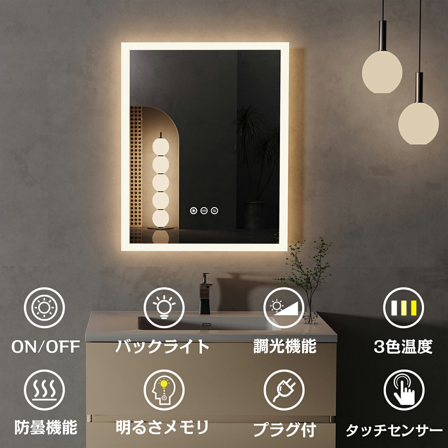 浴室鏡 ledミラー 洗面所鏡 LED 壁掛け 洗面所照明 洗面台ミラー 女優ミラー くもり止め くもらない 照明付き 洗面鏡 おしゃれ 防曇 防水 横掛け縦掛け 照明付き化粧鏡 40*50cm