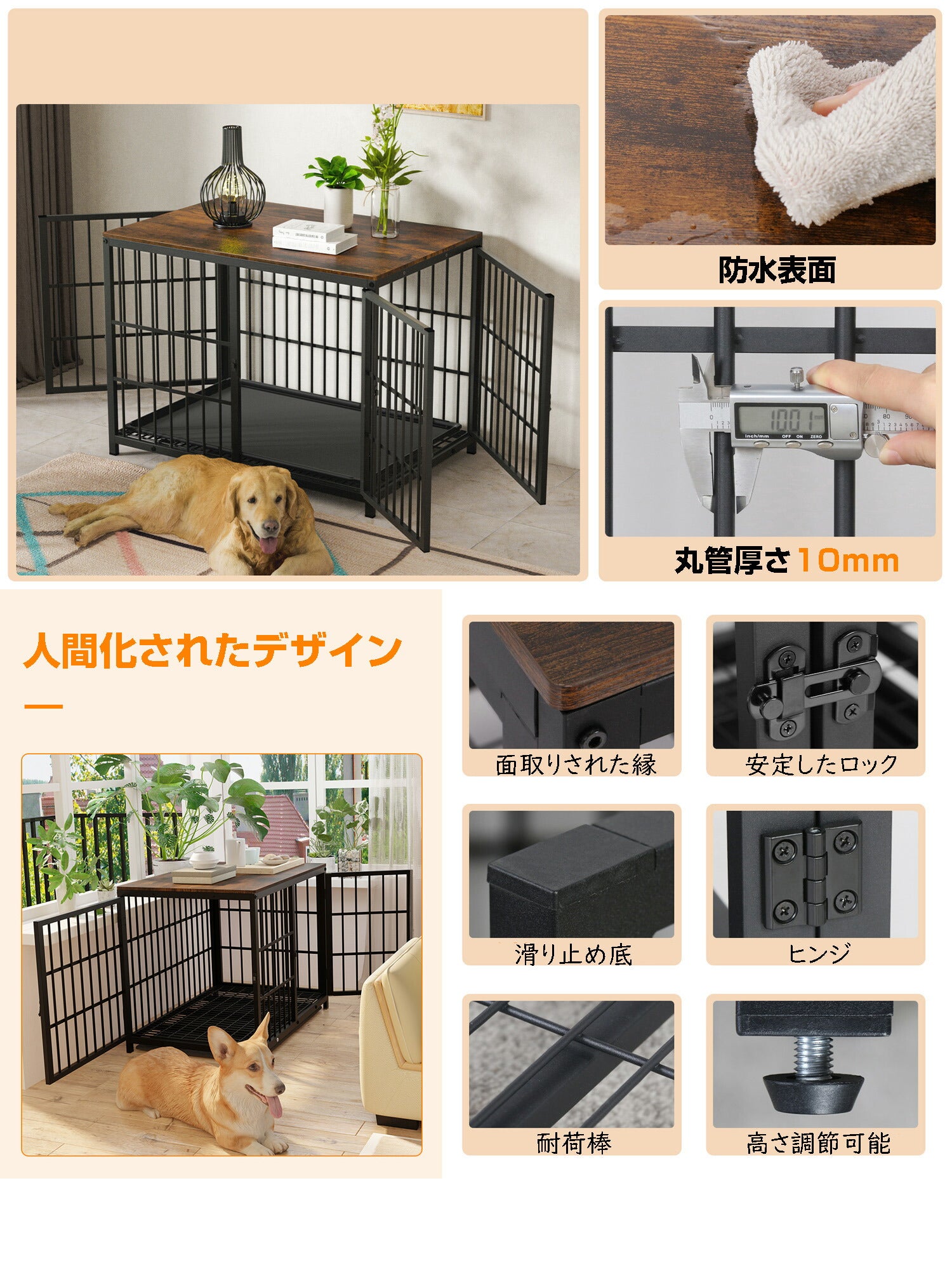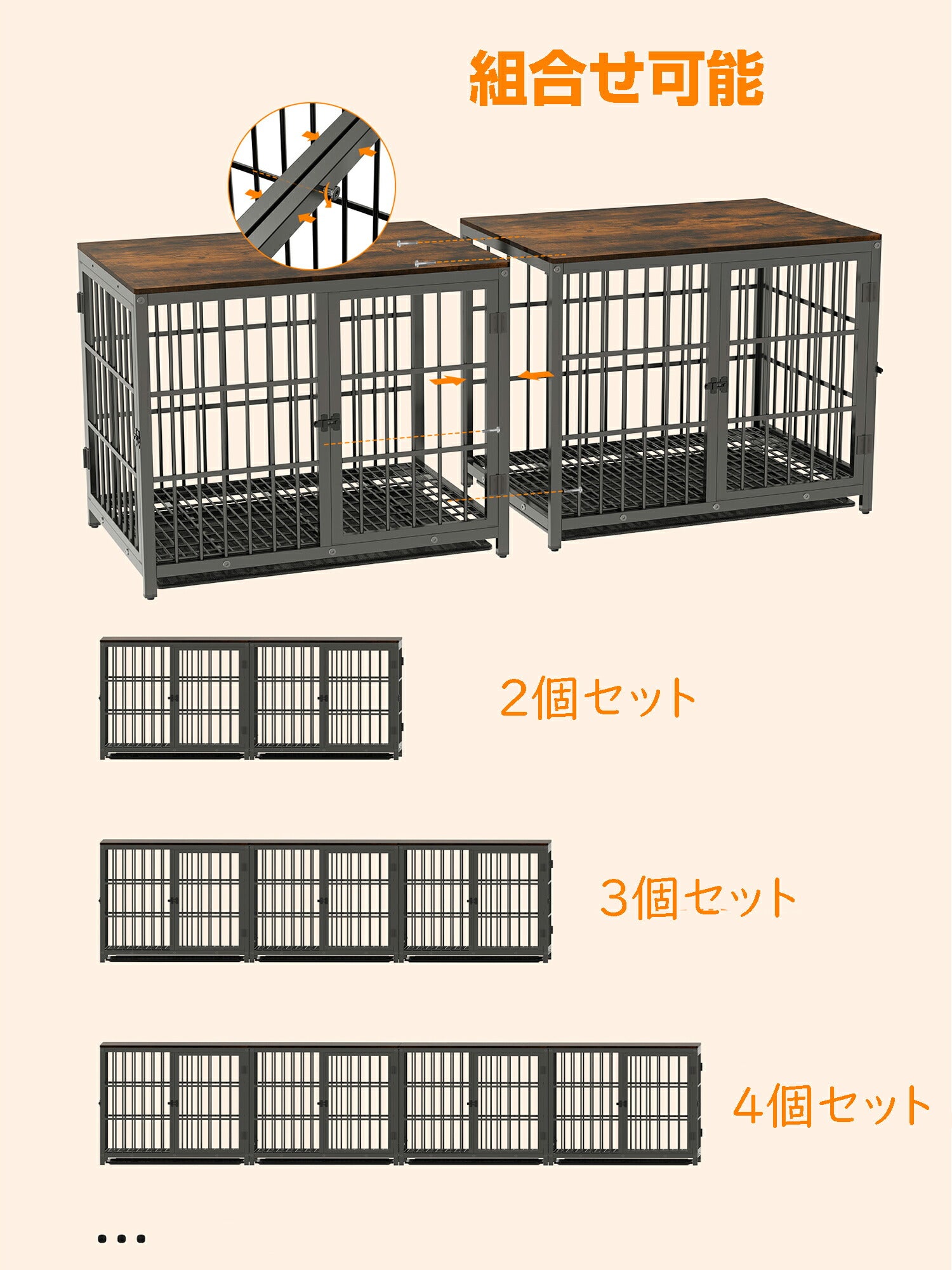 犬用ケージ 屋根付き 連接可能 小型犬 中型犬 白 黒 頑丈 トレー付き 犬ケージサークル 室内 犬小屋 木製 おしゃれ ペットケージ ウッディサークル インテリア ドッグケージ ホワイト ブラック