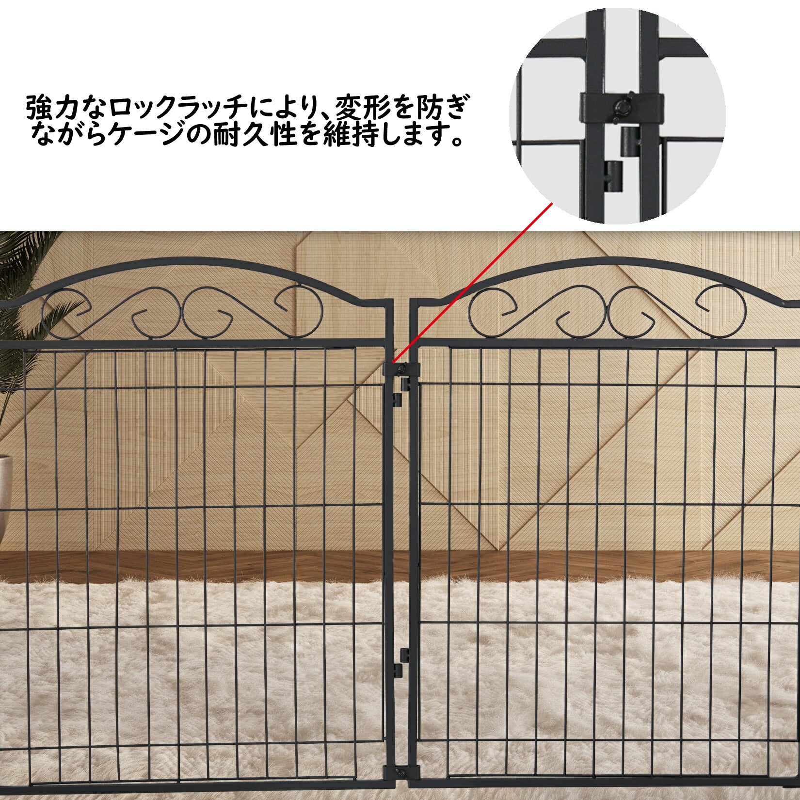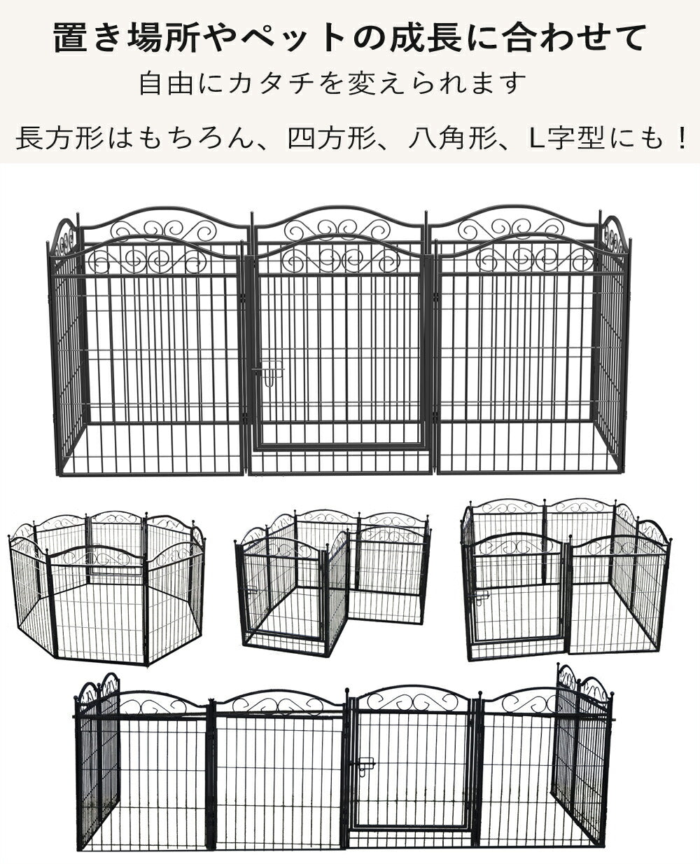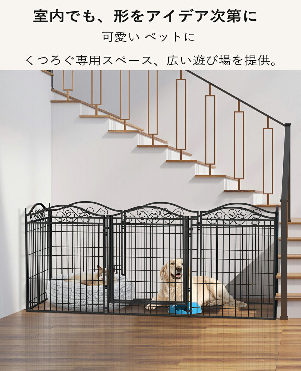 犬用サークル ペットサークル ペットフェンス 中大型犬用 ペットケージ パネル8枚 折り畳み式 カタチ変更可能 室内外兼用 スチール製 猫犬 大型犬用 中型犬用 四角ポール 複数連結可能 犬小屋 ペット用品 組立簡単