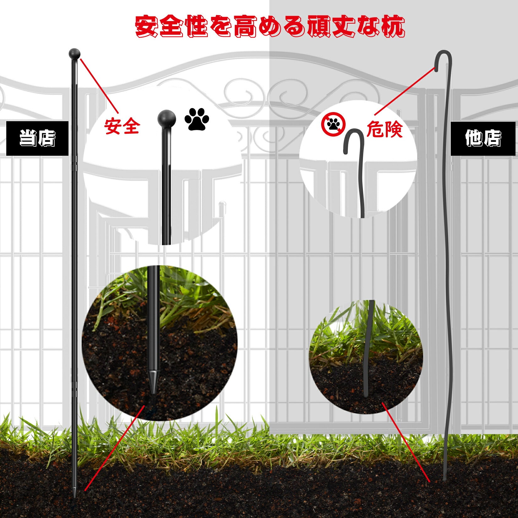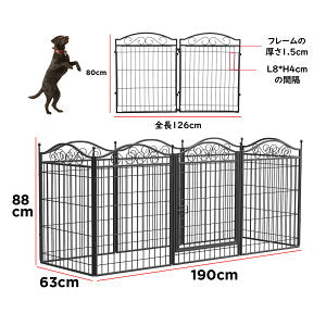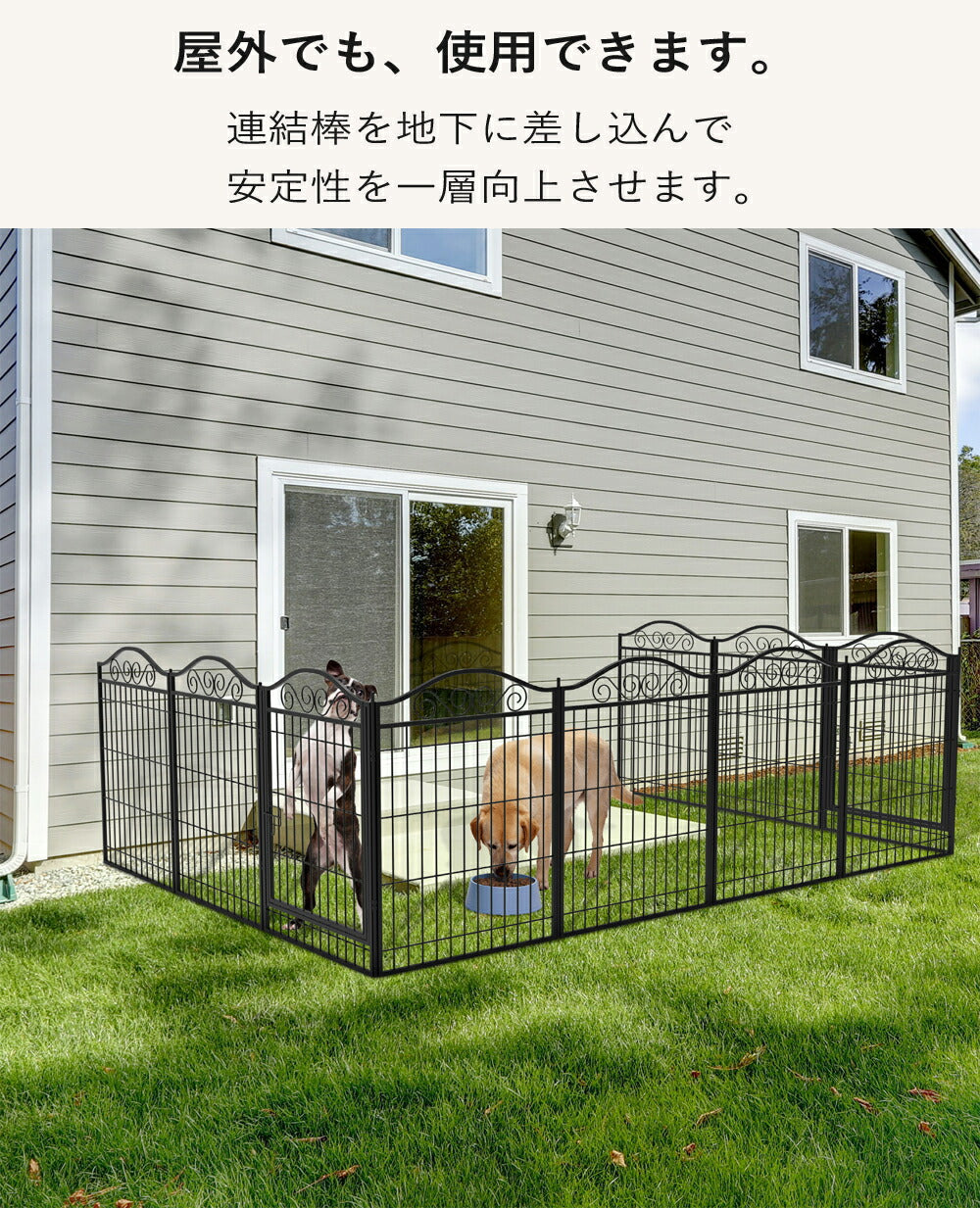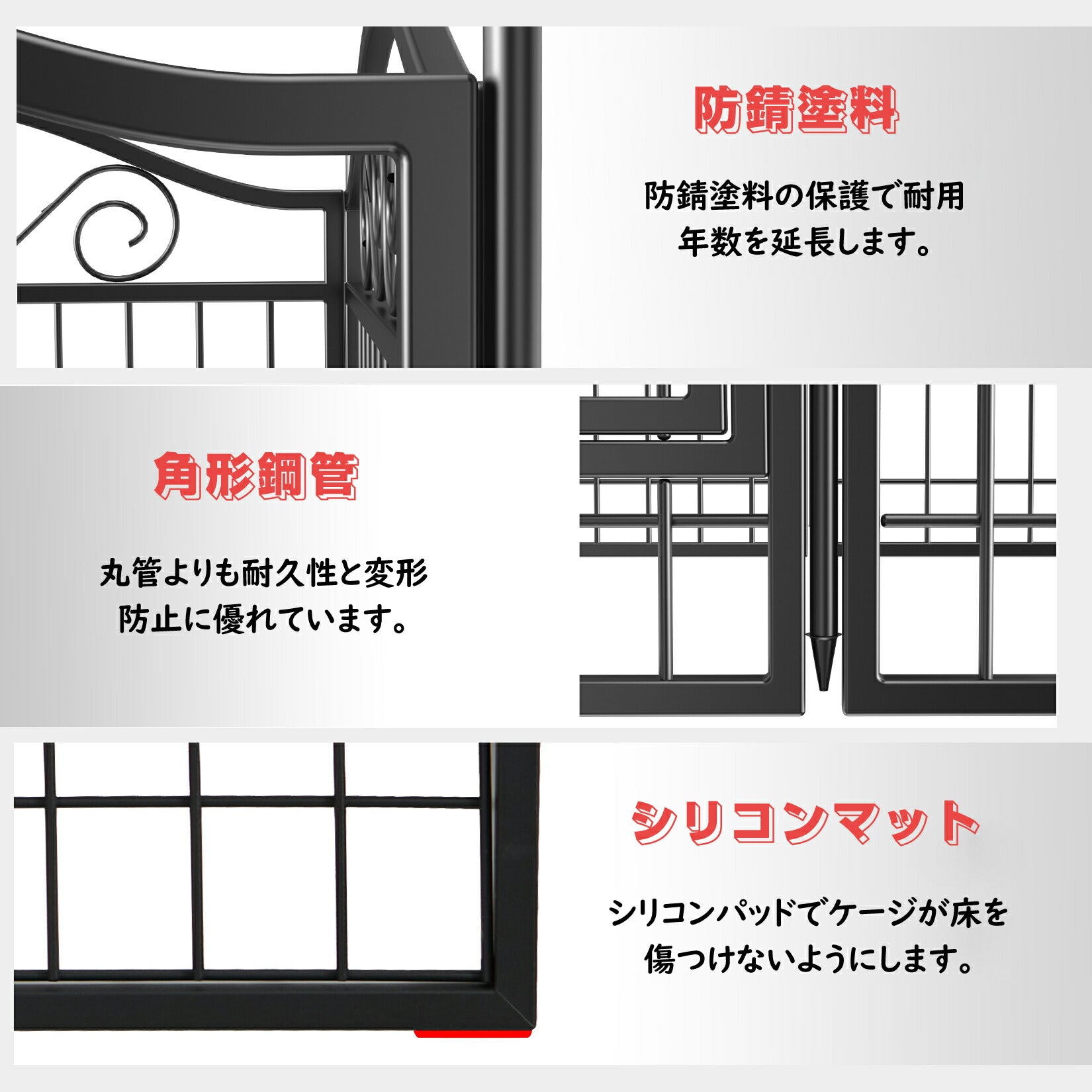 犬用サークル ペットサークル ペットフェンス 中大型犬用 ペットケージ パネル8枚 折り畳み式 カタチ変更可能 室内外兼用 スチール製 猫犬 大型犬用 中型犬用 四角ポール 複数連結可能 犬小屋 ペット用品 組立簡単