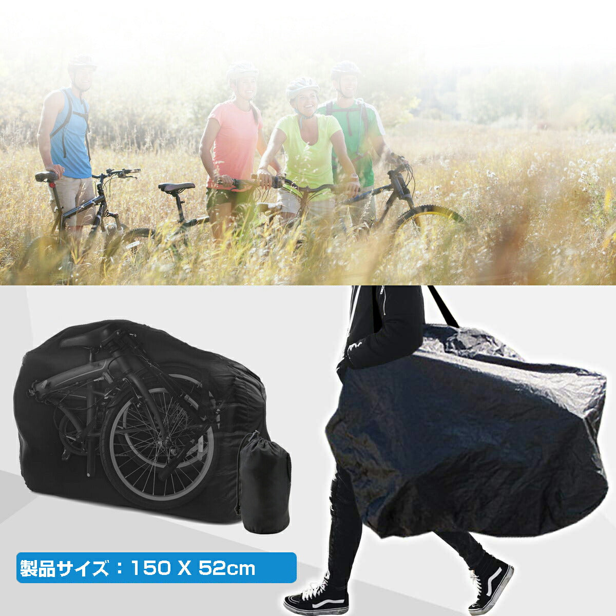 輪行バッグ 横型輪行袋 700C 26インチ以下 軽量 防水 ロードバイク クロスバイク 折りたたみ自転車