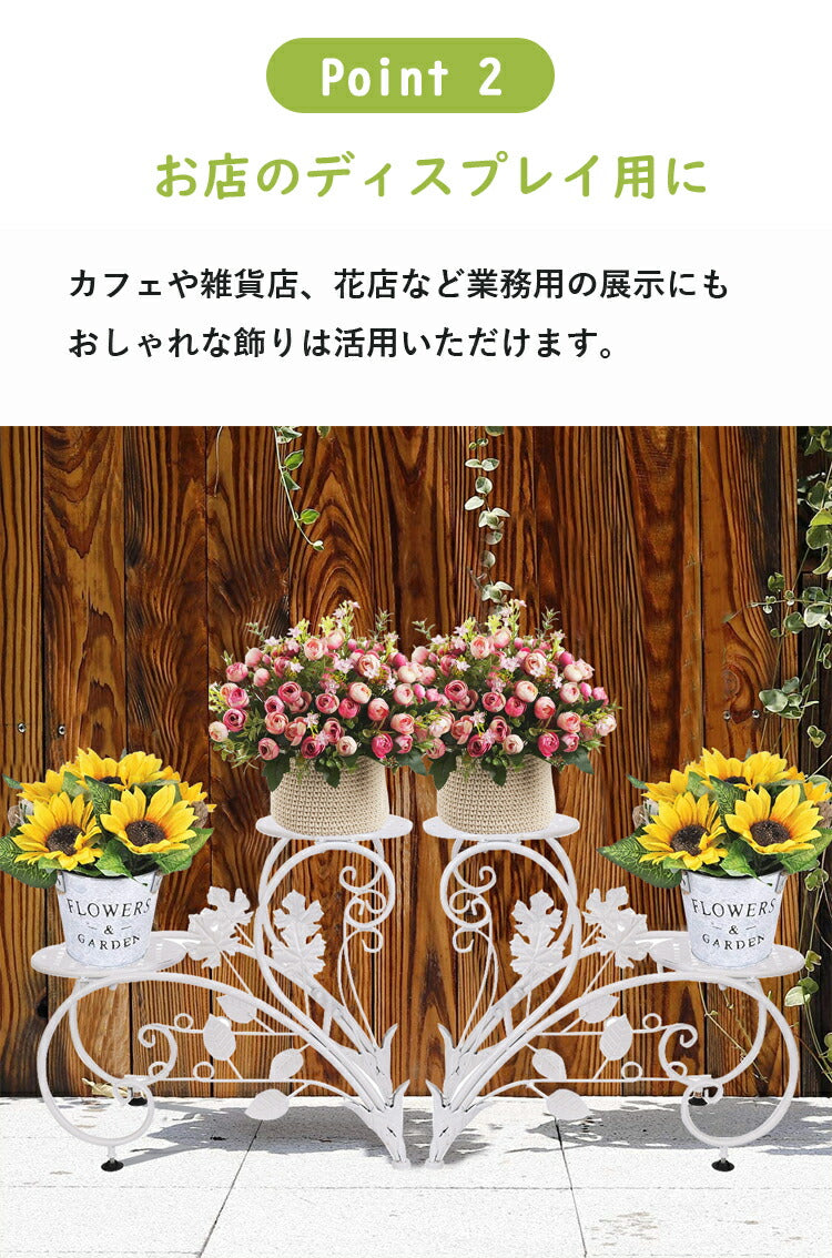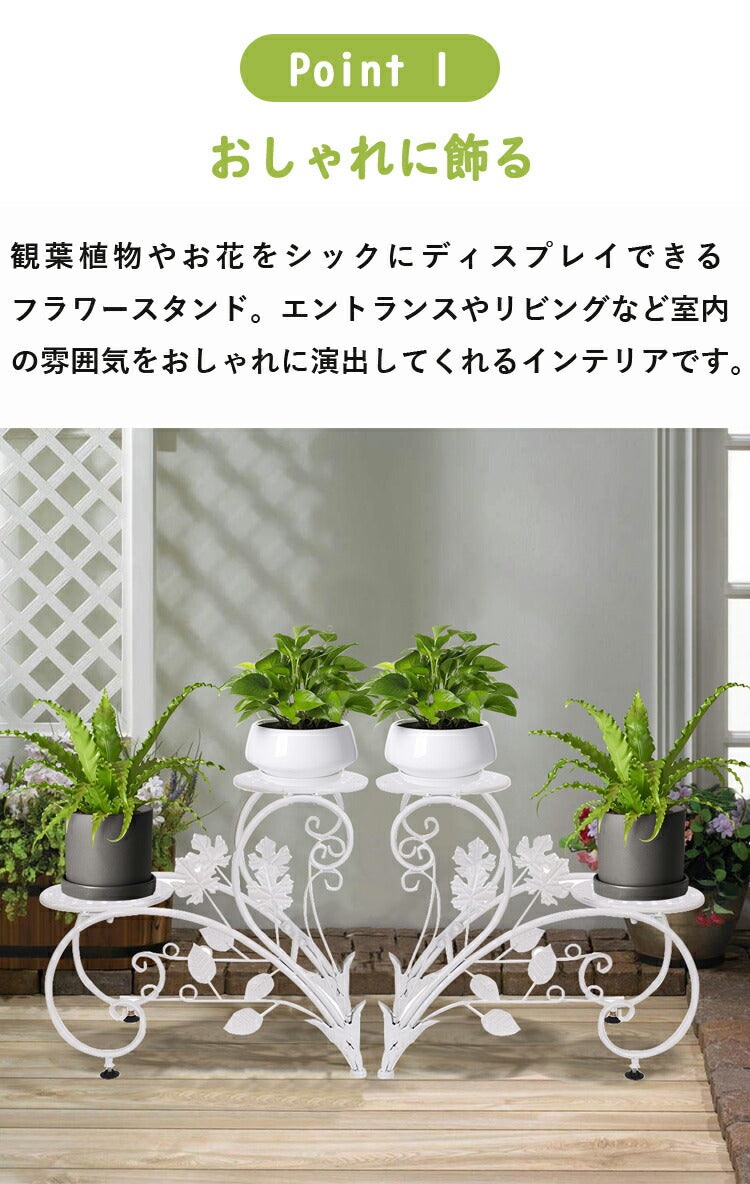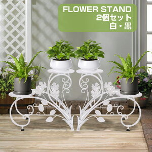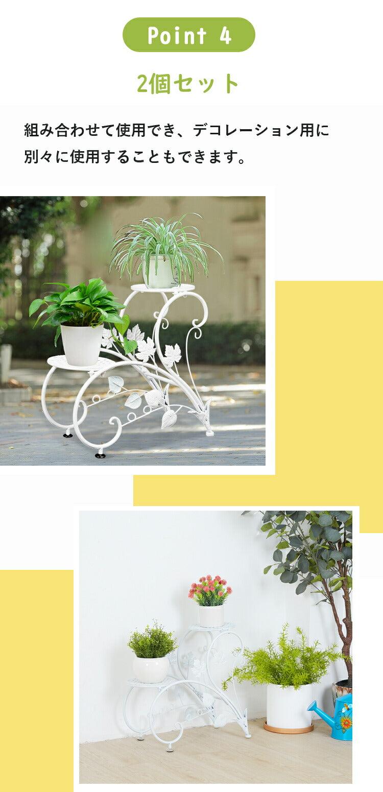 2個セット 花台 フラワースタンド アイアン 白 プランタースタンド 2段 おしゃれ フラワーラック 室内/ベランダ ガーデニング 棚 アンティーク 鉢スタンド ホワイト
