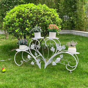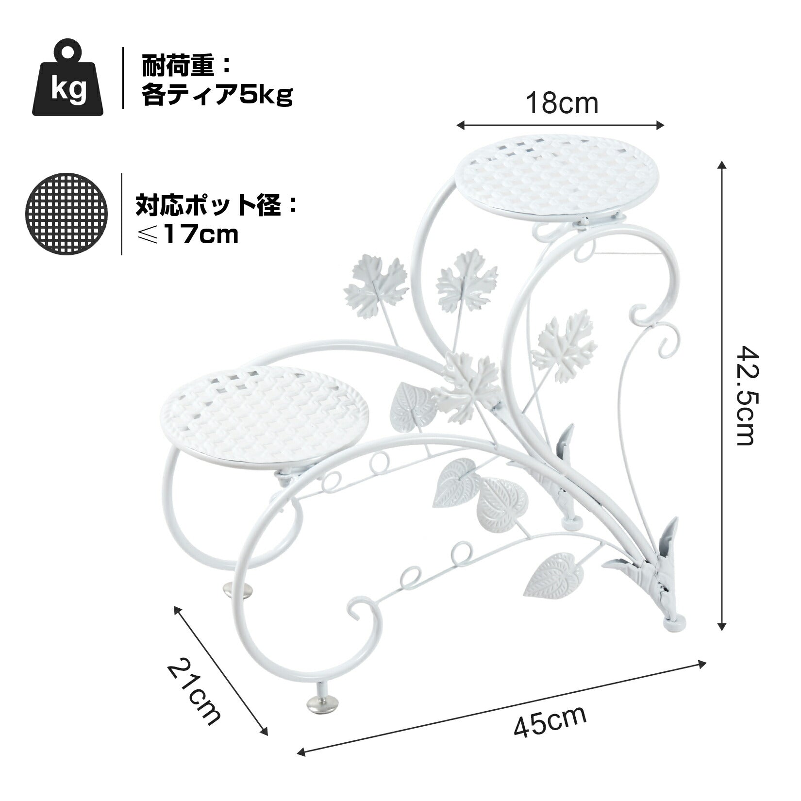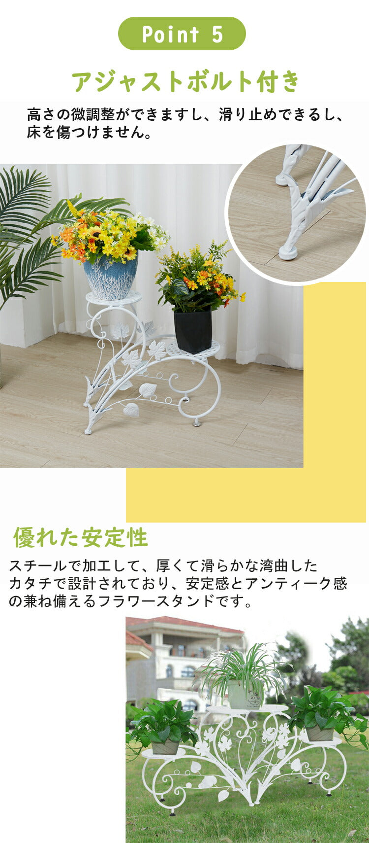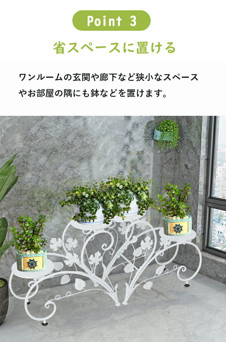 2個セット 花台 フラワースタンド アイアン 白 プランタースタンド 2段 おしゃれ フラワーラック 室内/ベランダ ガーデニング 棚 アンティーク 鉢スタンド ホワイト