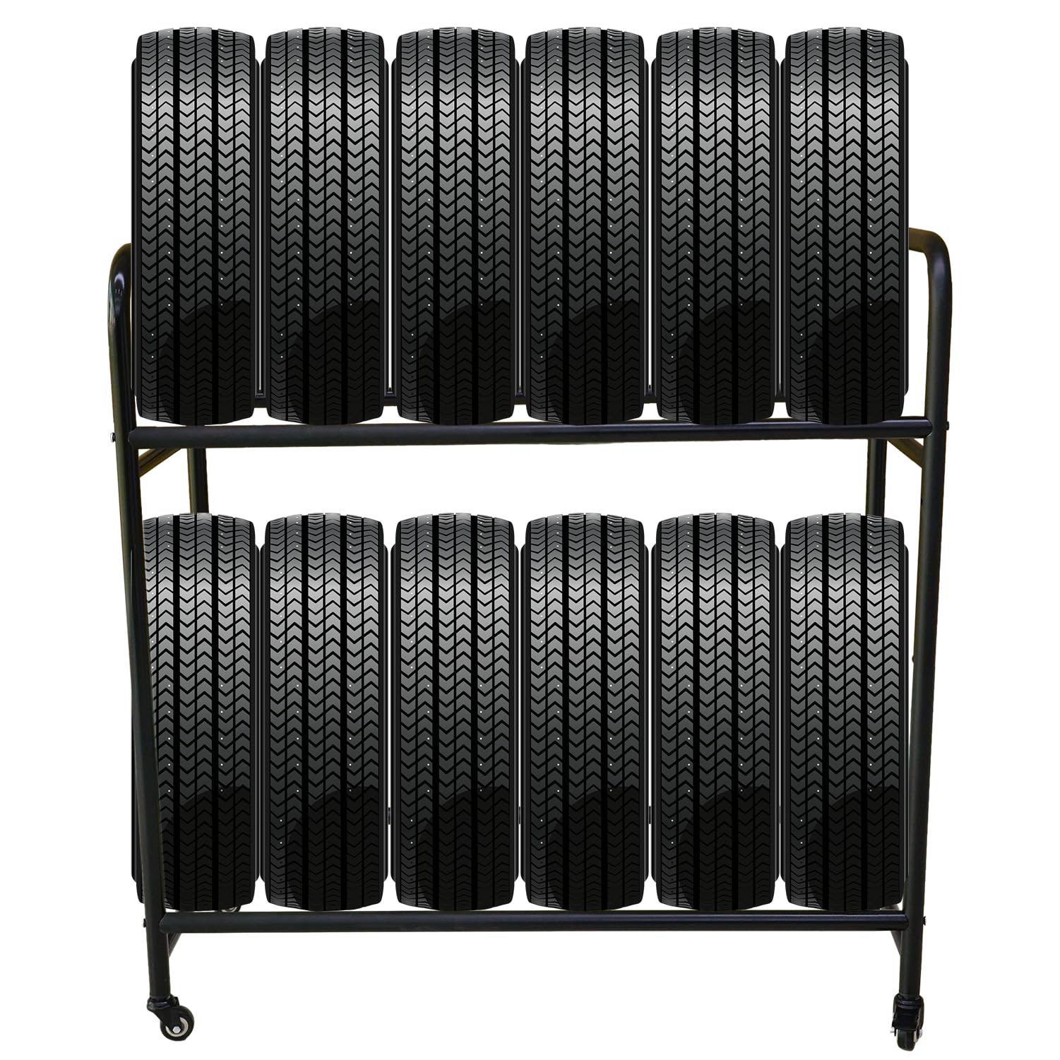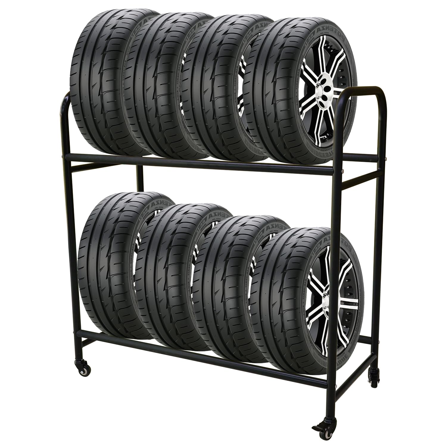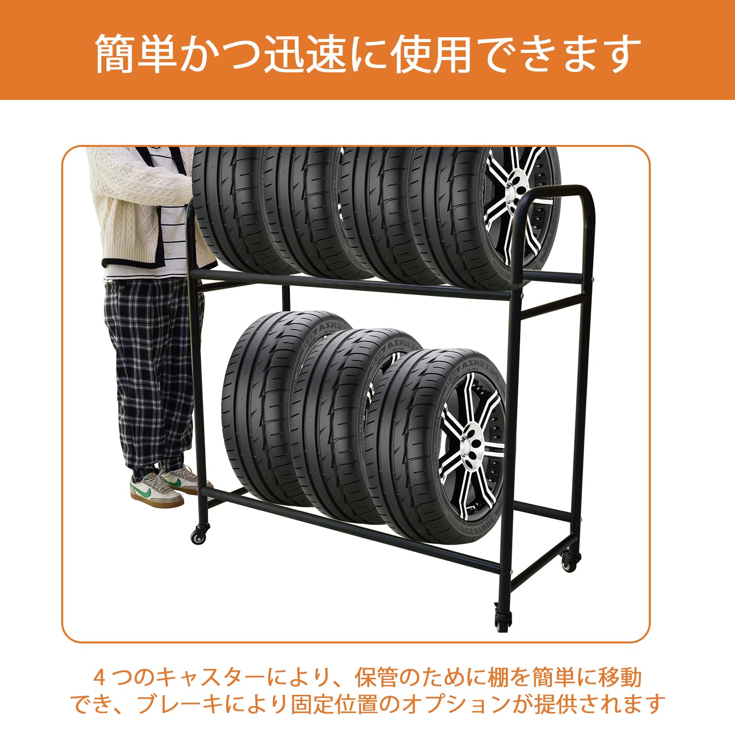 Orealauto タイヤラック タイヤスタンド 2段式タイヤラック 8-10本タイヤ収納 屋外 タイヤ カー用品 普通車 軽自動車 大型車 RV車 SUV 車 物置 保管 ワイド スペアタイヤ スタッドレスタイヤ ガレージ収納 縦置き キャスター付き タイヤラック スタンド ロック機能付き