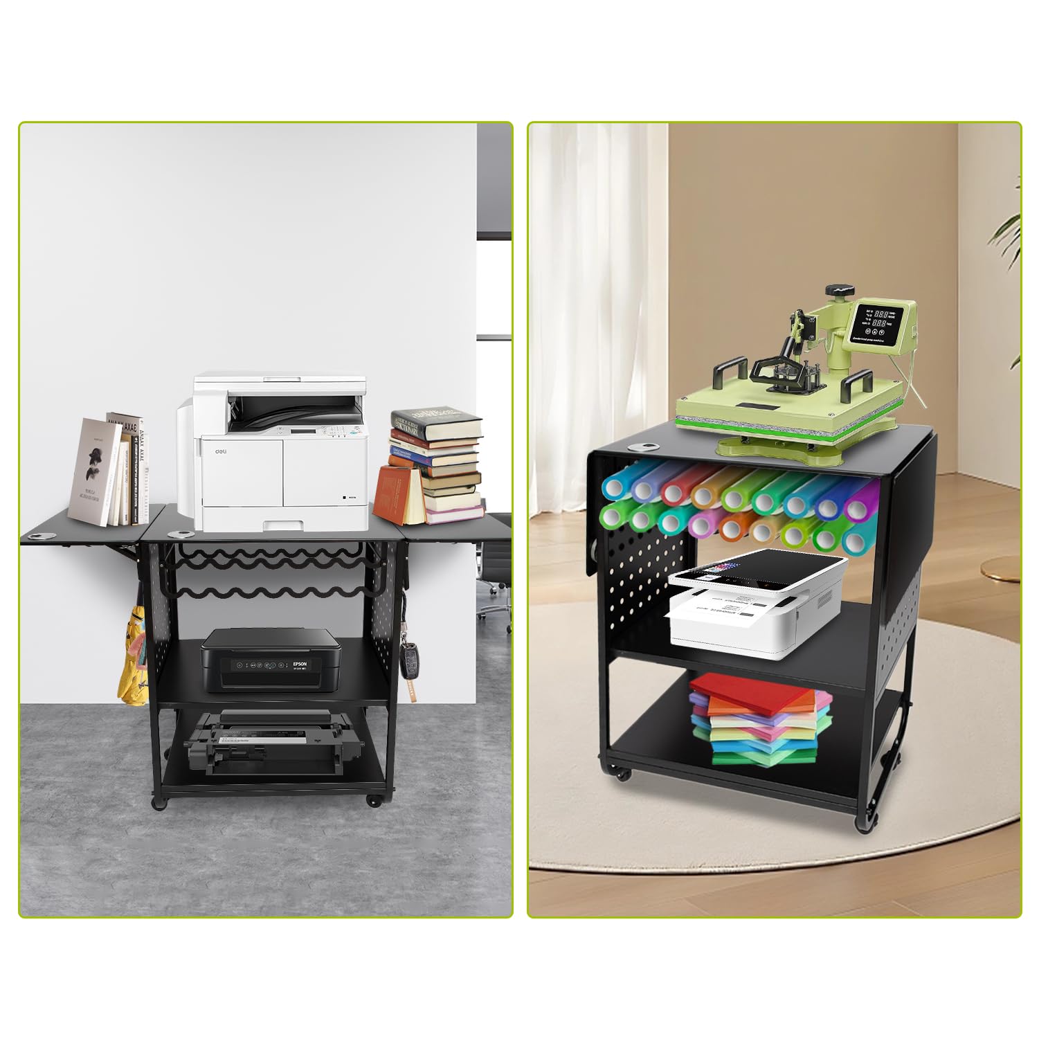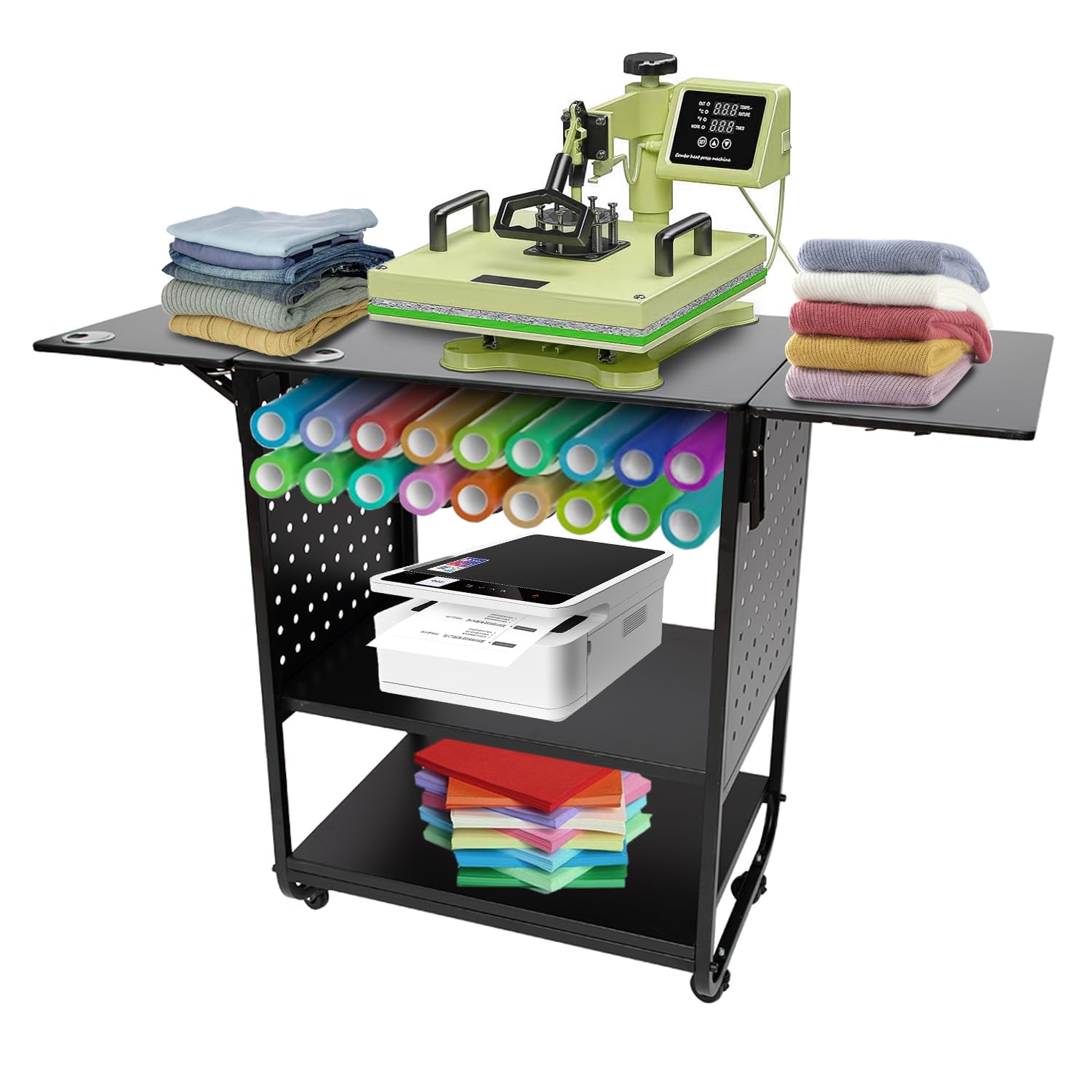 Orealauto 3段可動式熱プレステーブル 折りたたみ式 熱転写機スタンド 118 x 48 x 90 cm 高耐久 ローリングメタル 収納 テーブルDIY昇華転写機 熱プレス機 昇華プリンター用 テーブル テーブル メタルシェルフ ストレージ整理 簡単にインストールします 引っ掛け可能な穴板です