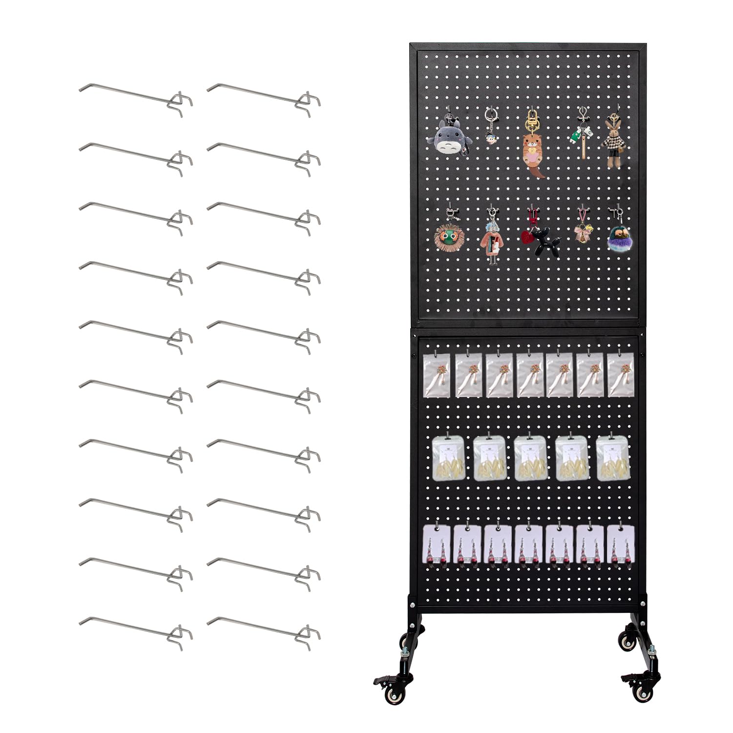 Orealauto 60cmx152cmワイヤーグリッドパネル ワイヤー壁グリッドディスプレイラック クラフトショー用 Tベース 床置き 頑丈 厚みのあるフレーム アートショー ディスプレイパネル グリッドウォールパネル タワー フック20個付き ペグボード壁オーガナイザーキット金属製ペグボード マウントアクセサリーとの組み合 ラフトワークショップルームストレージディスプレイツール用